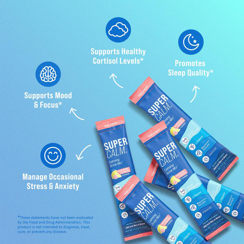 When you need to chill out or anytime before bed. On stressful days, especially if caffeine is consumed. Mix one Supercalm packet with 8oz of cold water.