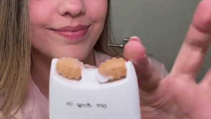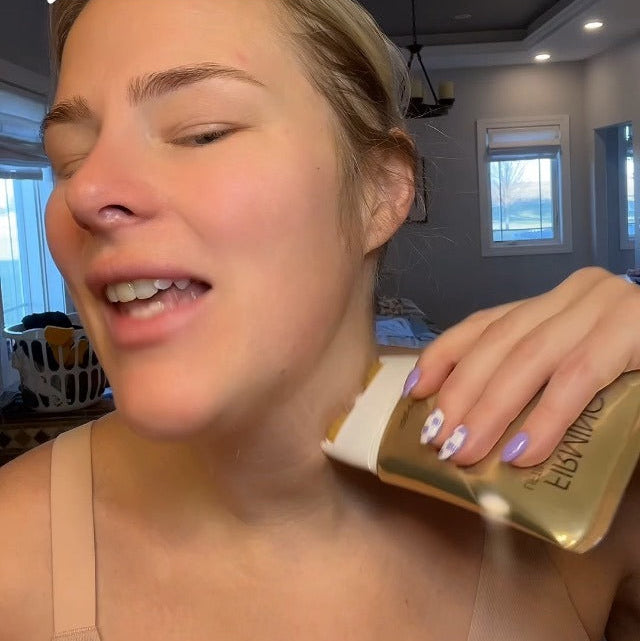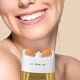 Gira la cabeza del tubo a la posición “ON”, presiona suavemente para liberar el gel y masajea el cuello y escote con los rodillos hasta que se absorba por completo. Luego gira a “OFF” para cerrar.